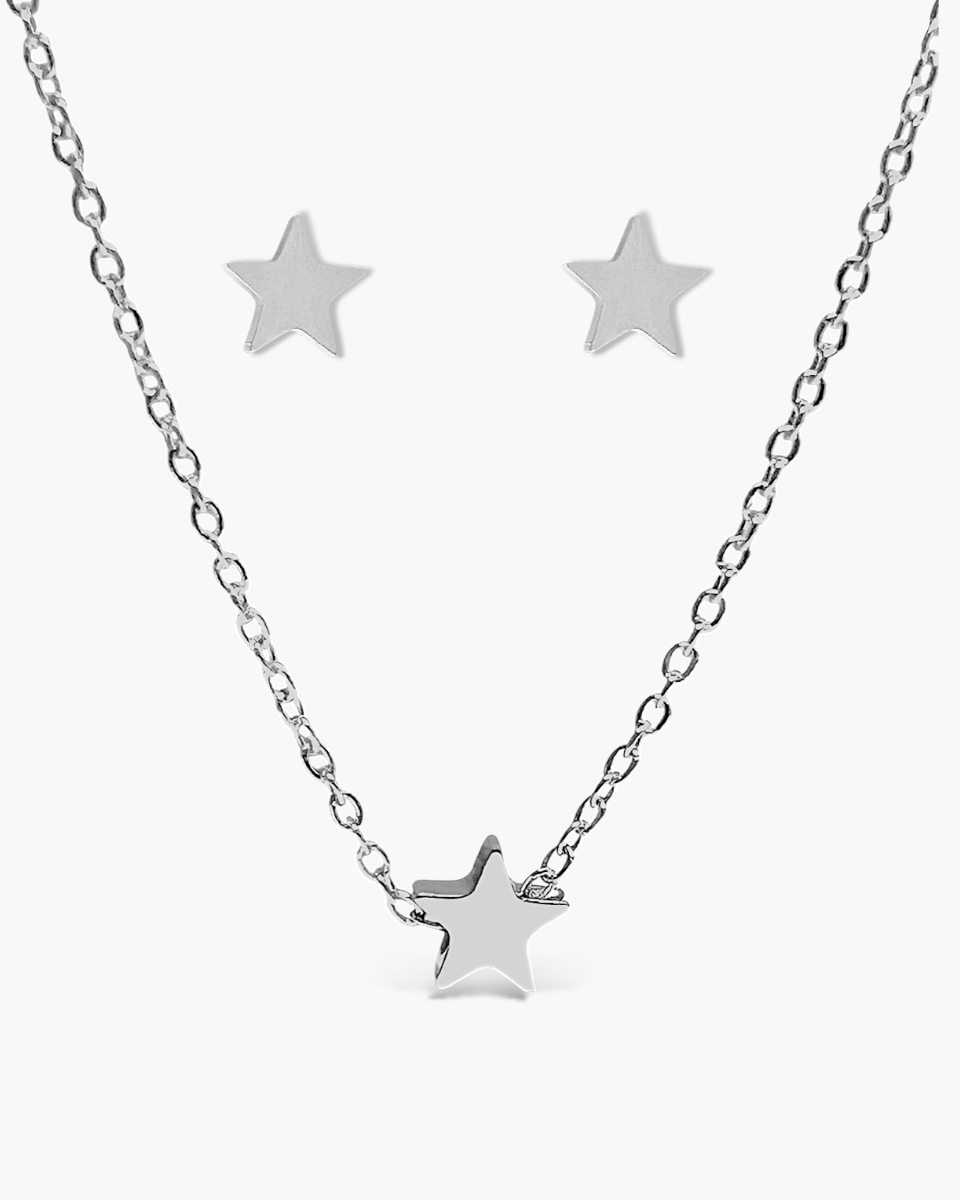 KIT Colar Estrela 3D + Brinco Estrela Minimalista em Aço Inoxidável