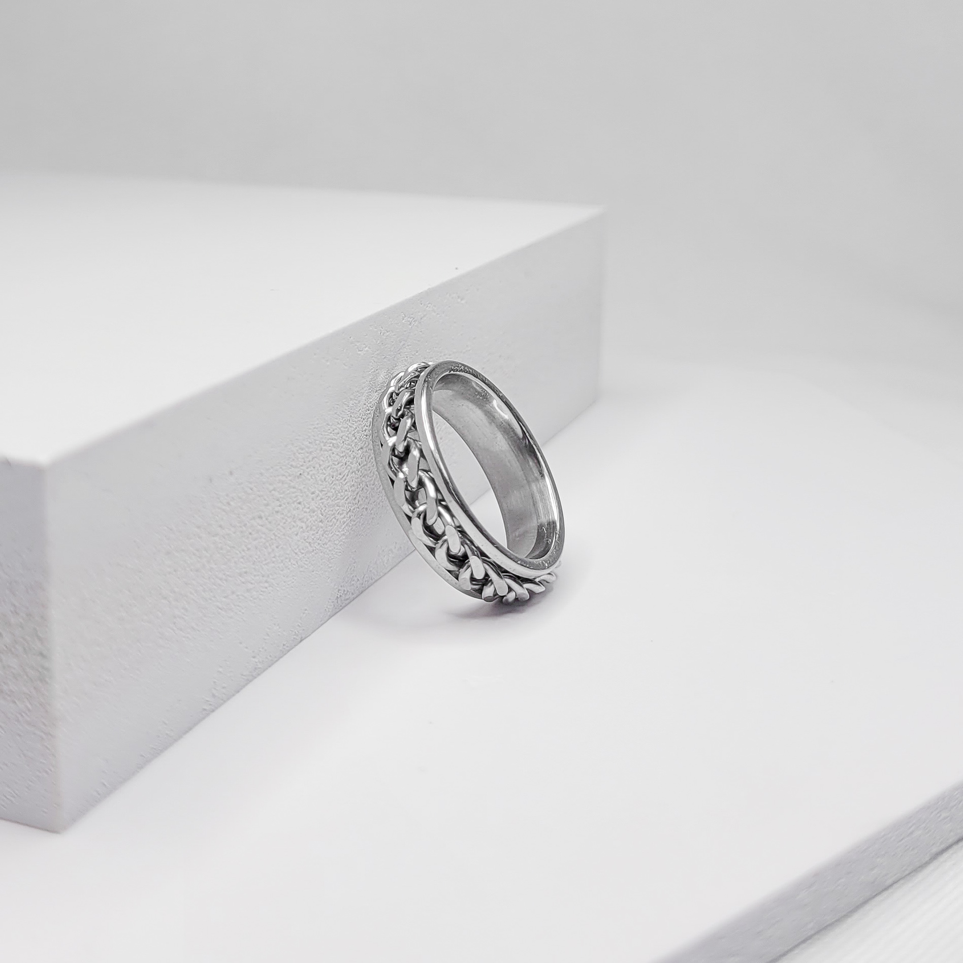 O anel de corrente é estiloso e robusto, garante um destaque ao seu look