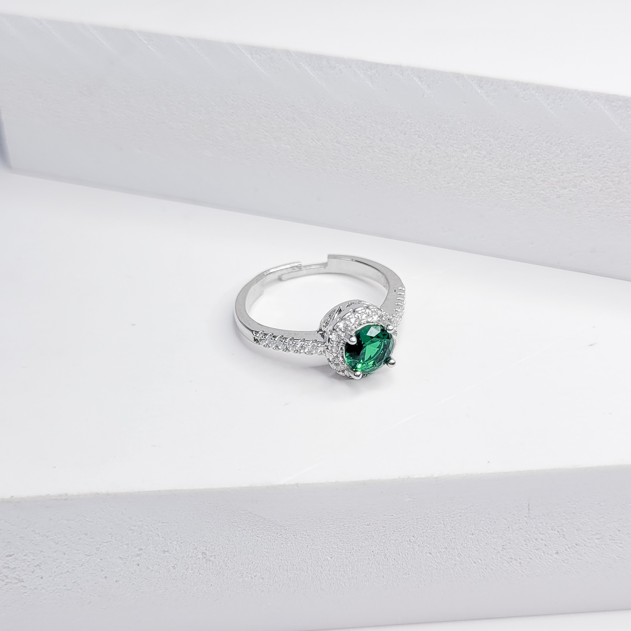 Anel Cravejado com Zircônia Redondo Verde luxo Regulável
