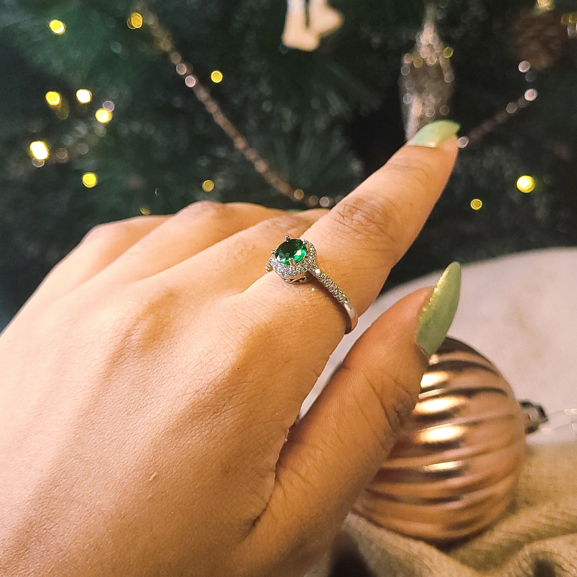Anel Cravejado com Zircônia Redondo Verde luxo e sofisticado