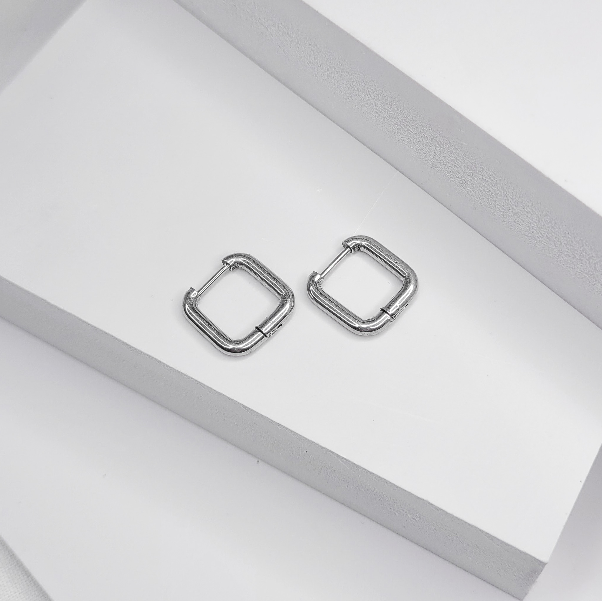Modelo: Argola Mini Click quadrada em aço inoxidável Prata