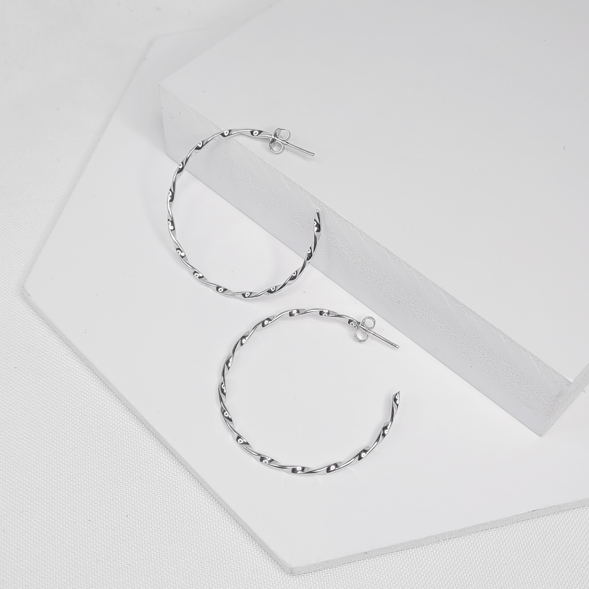 Brinco Argola Trançada Grande em aço inoxidável – antialérgica