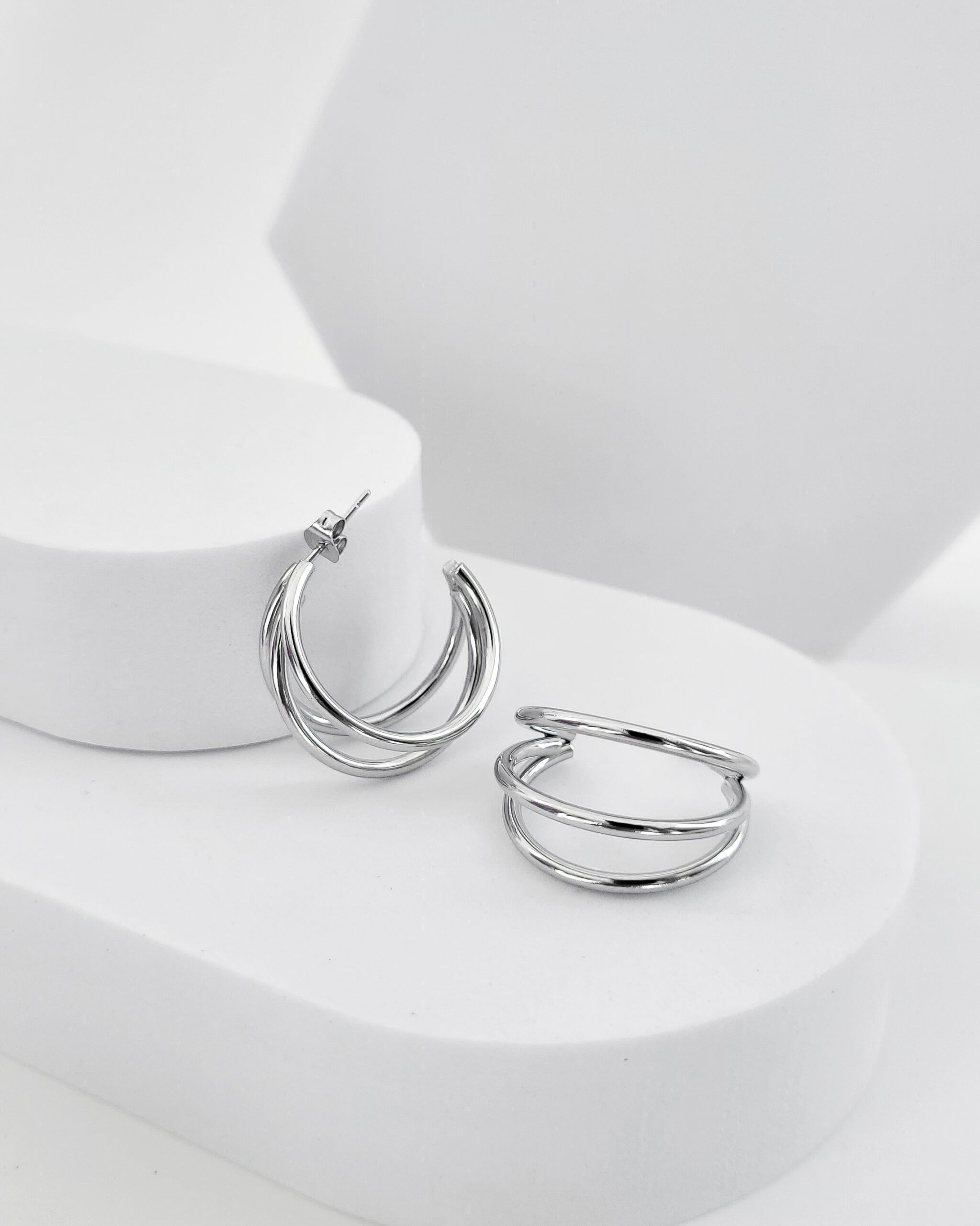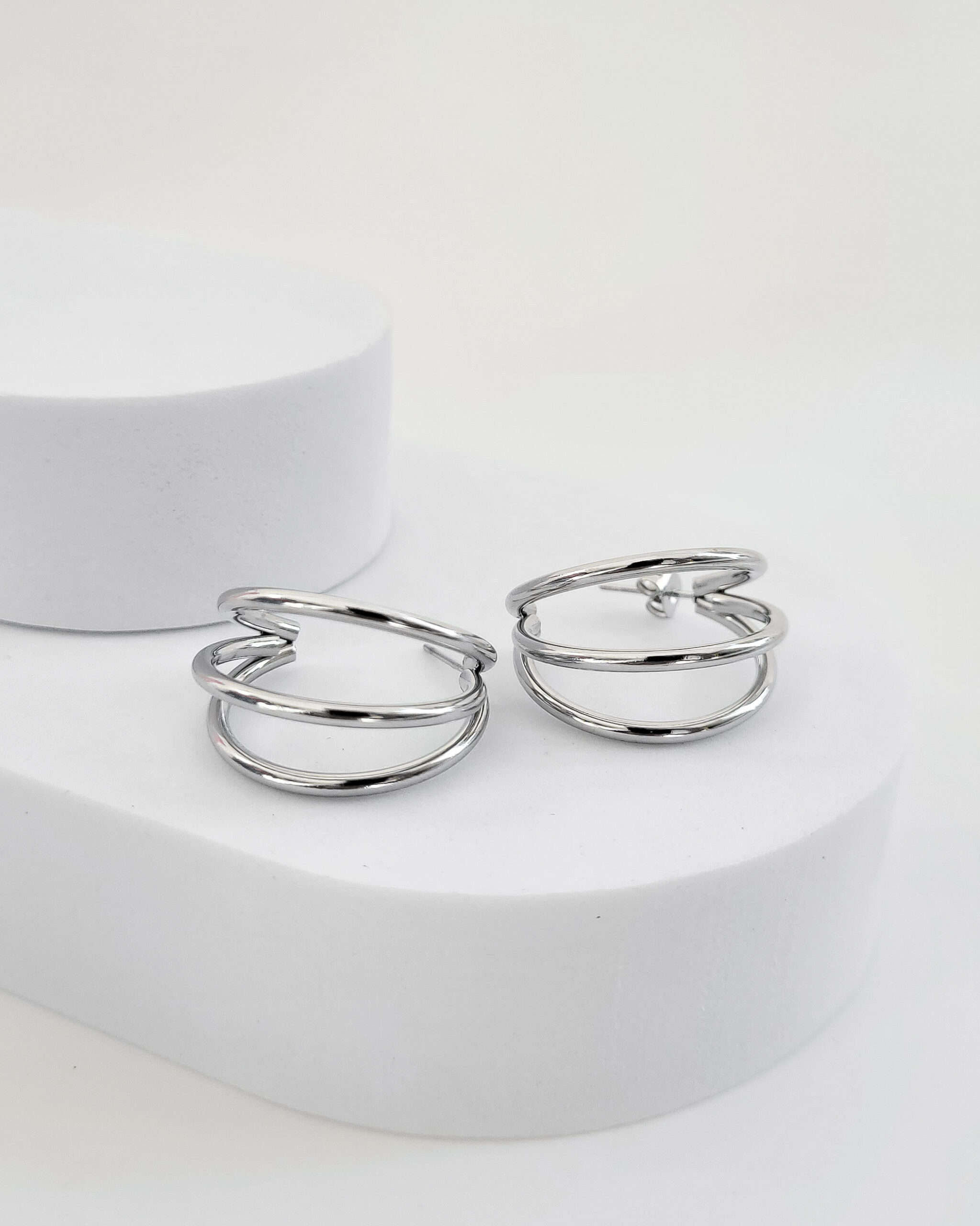 Brinco Argola Tripla Prata em aço inoxidável