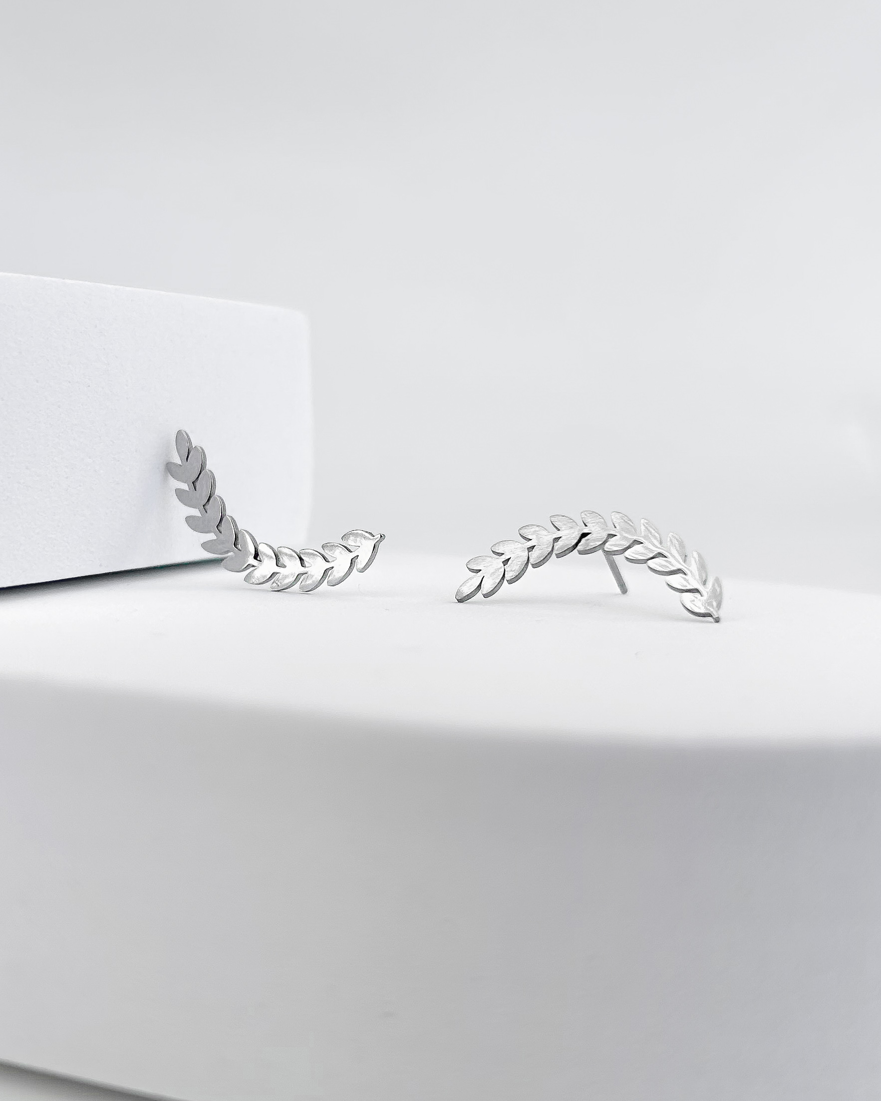 Brinco Ear Cuff Folhas em Aço Inoxidável