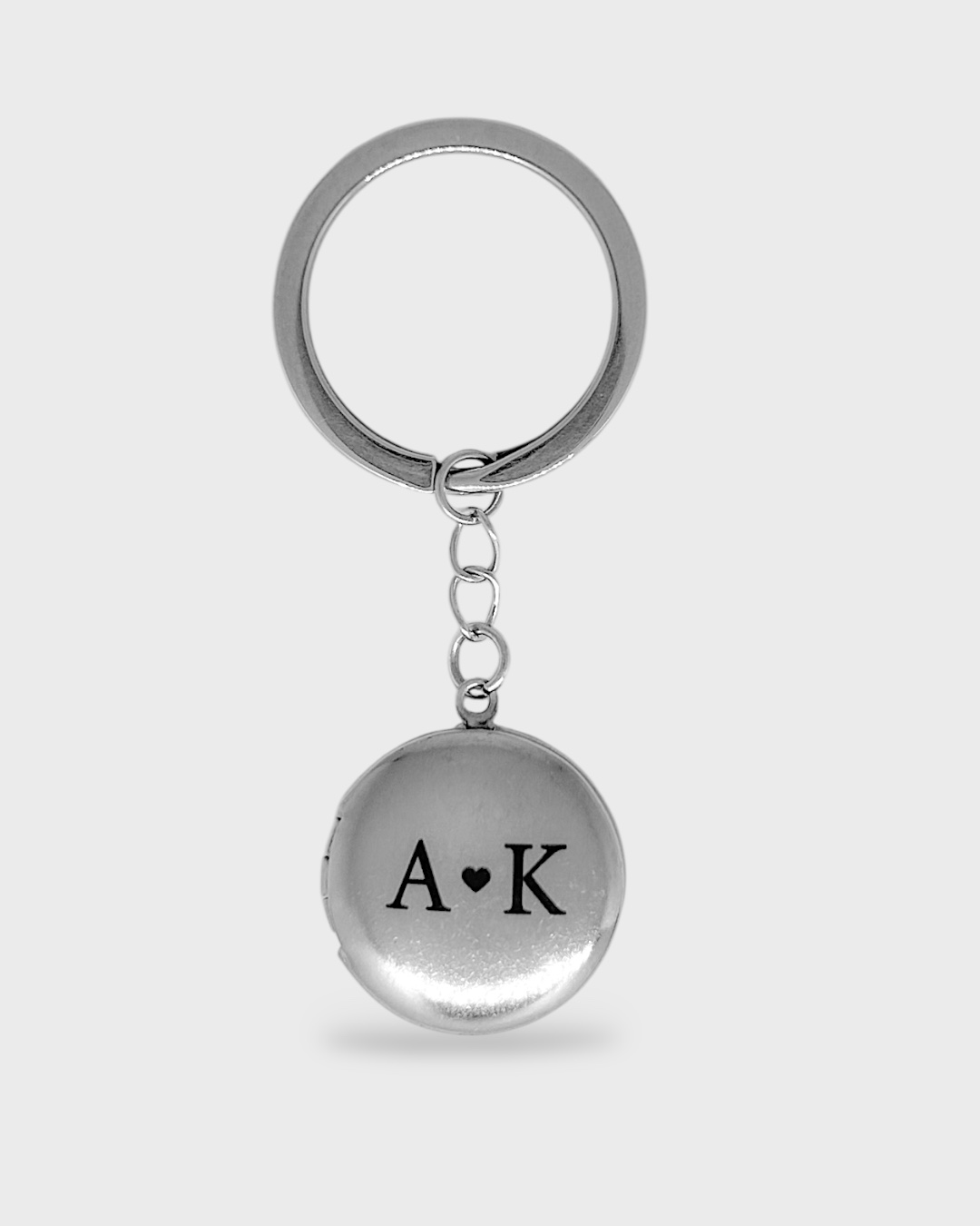 Chaveiro Relicário Redondo Iniciais em Aço Inoxidável