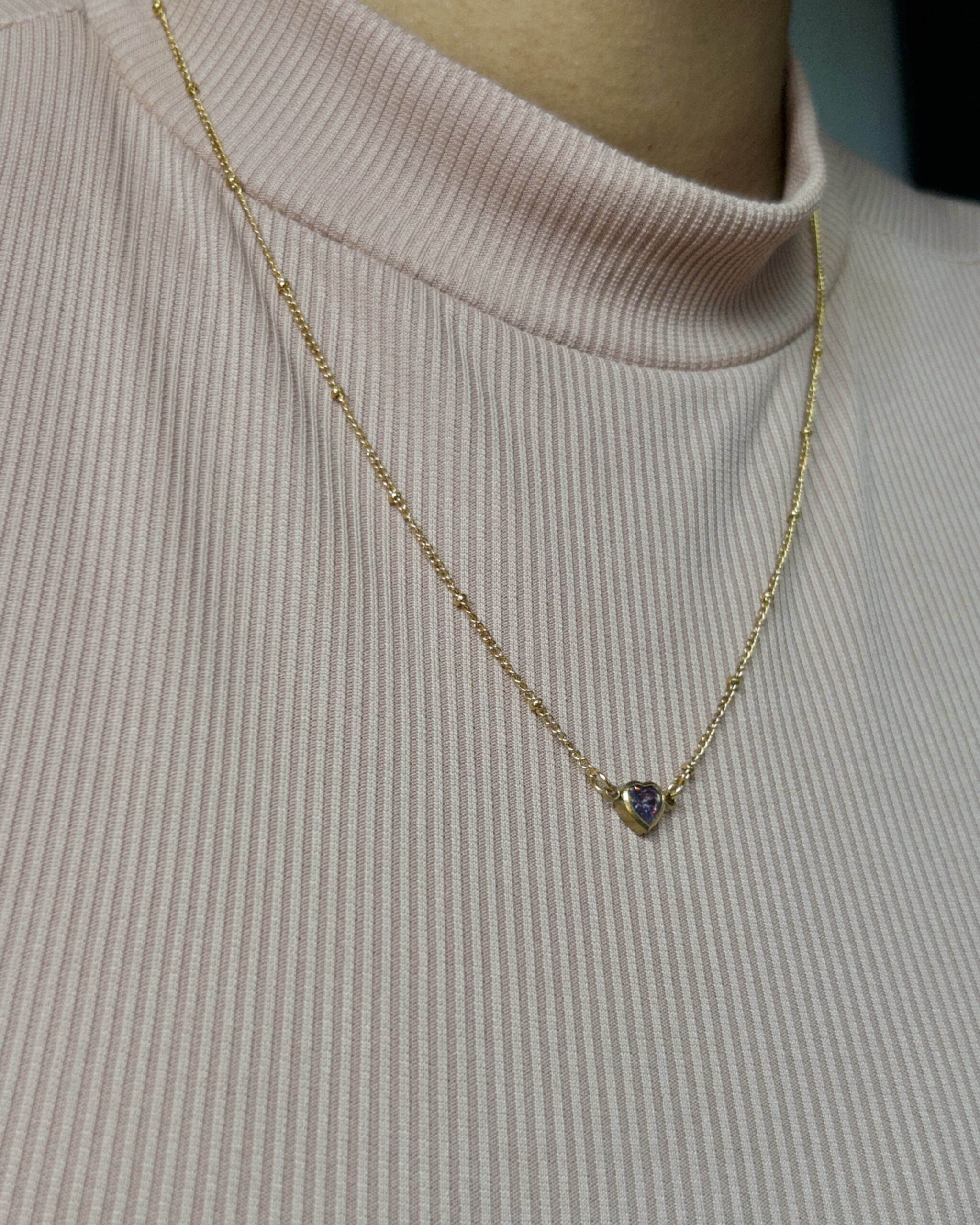 Colar Bolinhas com Pingente Coração em Aço Inoxidável Dourado