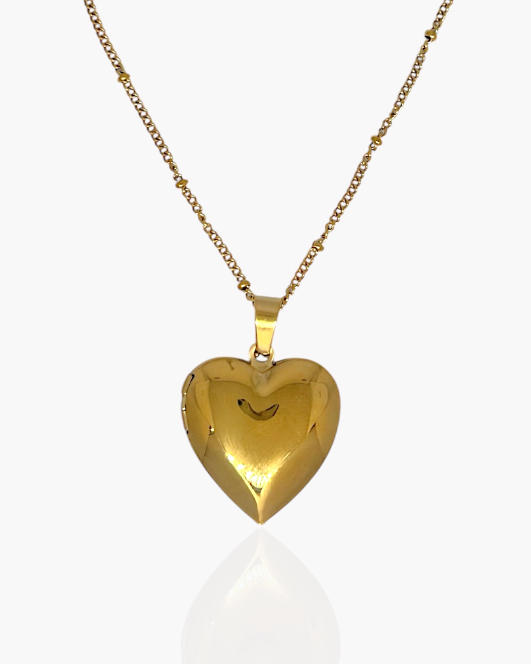 Descubra a delicadeza e o mistério do nosso Colar Bolinhas Relicário Coração Mini em Aço Inoxidável banhado a Ouro 18K Uma peça charmosa que permite guardar uma pequena lembrança, foto ou mensagem secreta.