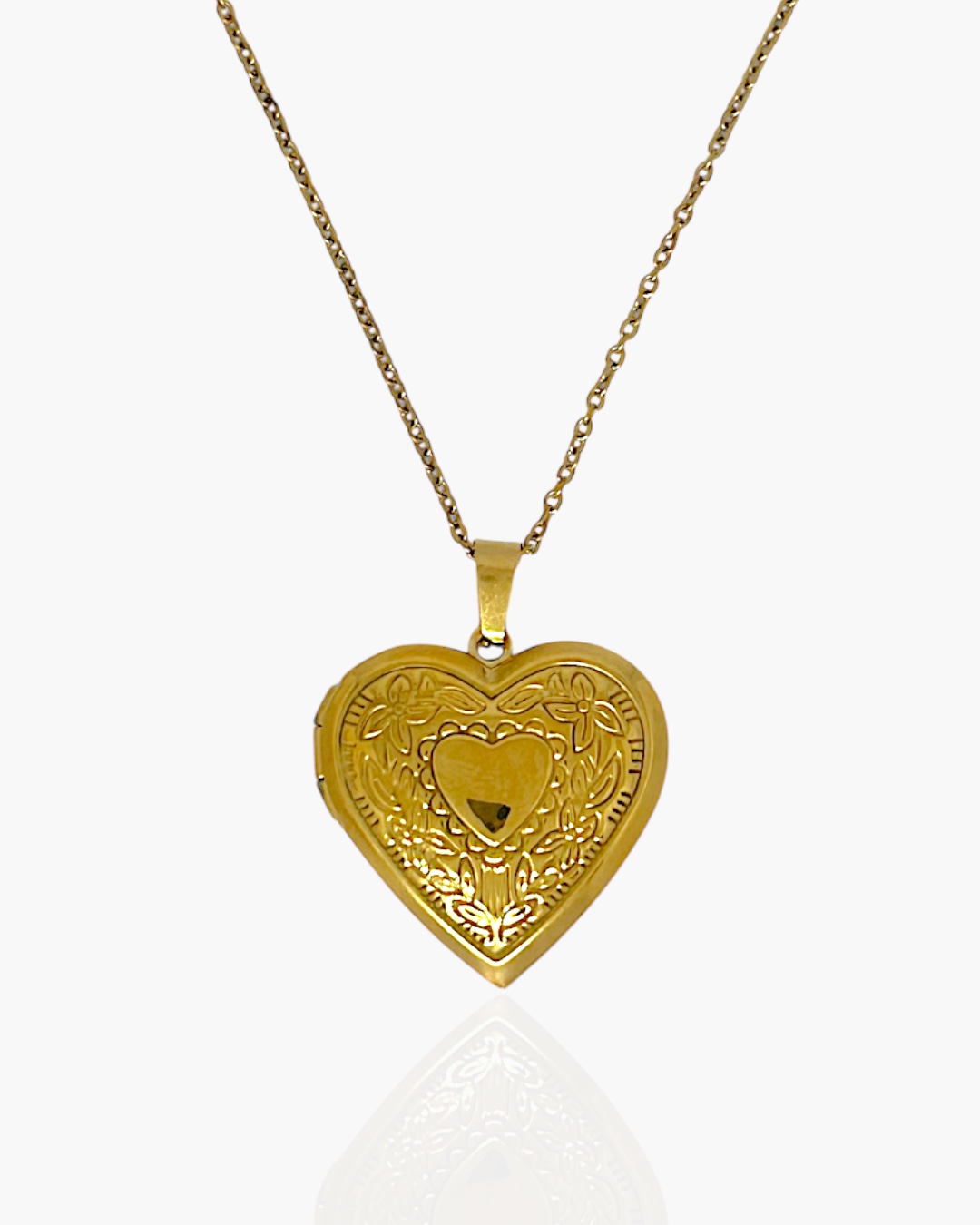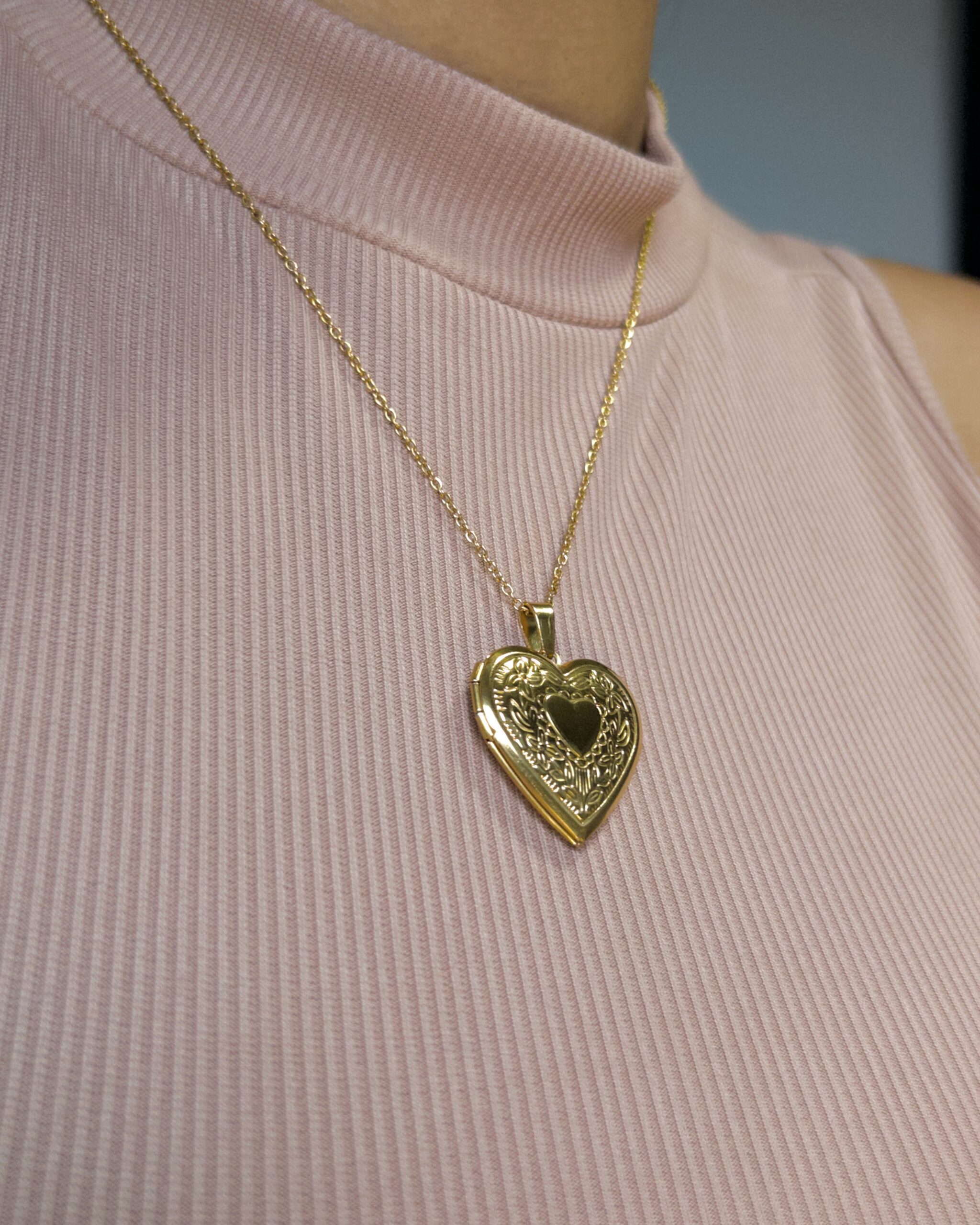 Colar Relicário com foto Coração em Aço Inoxidável Dourado