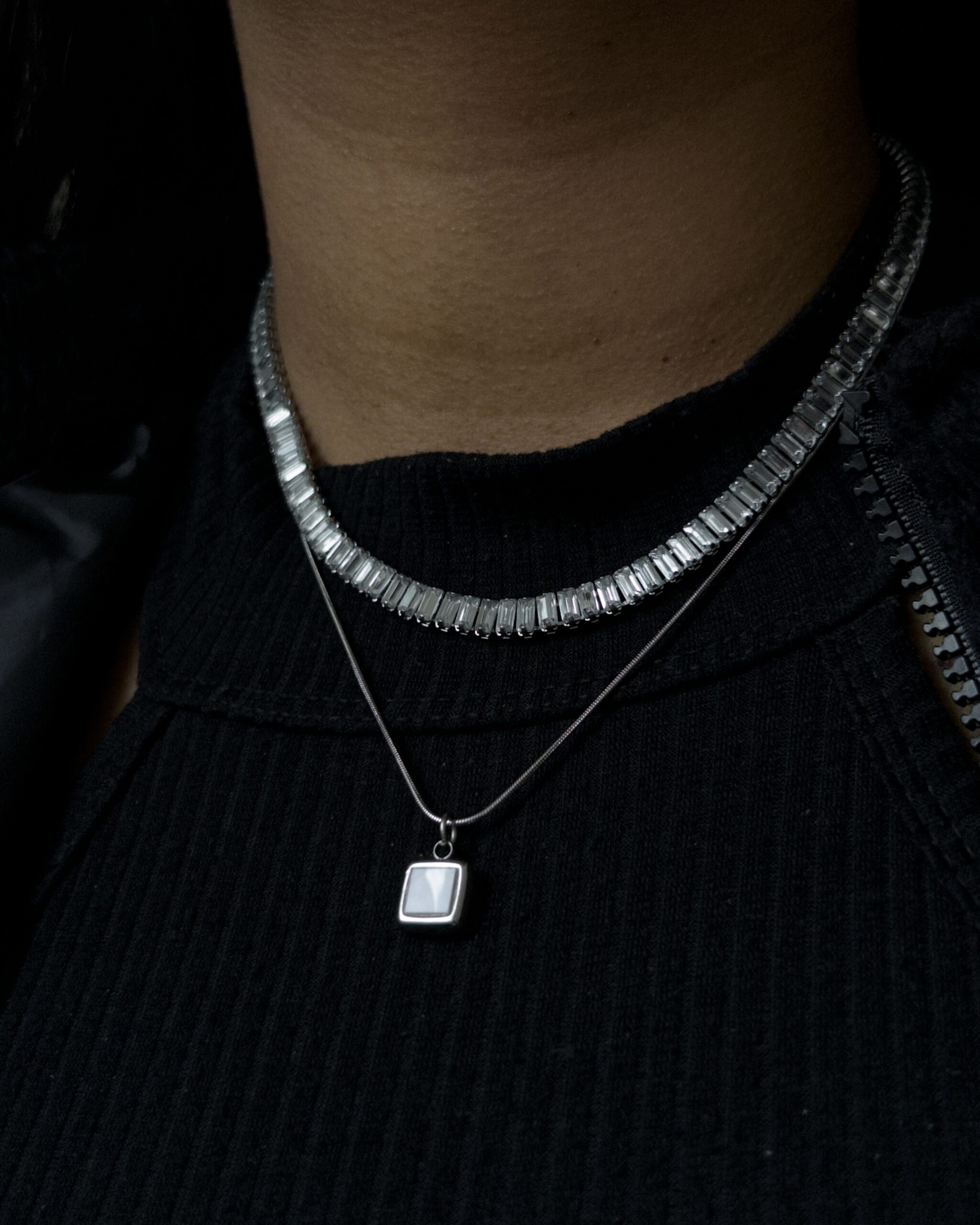 Modelo: Gargantilha Riviera Zircônia Retangular Luxo