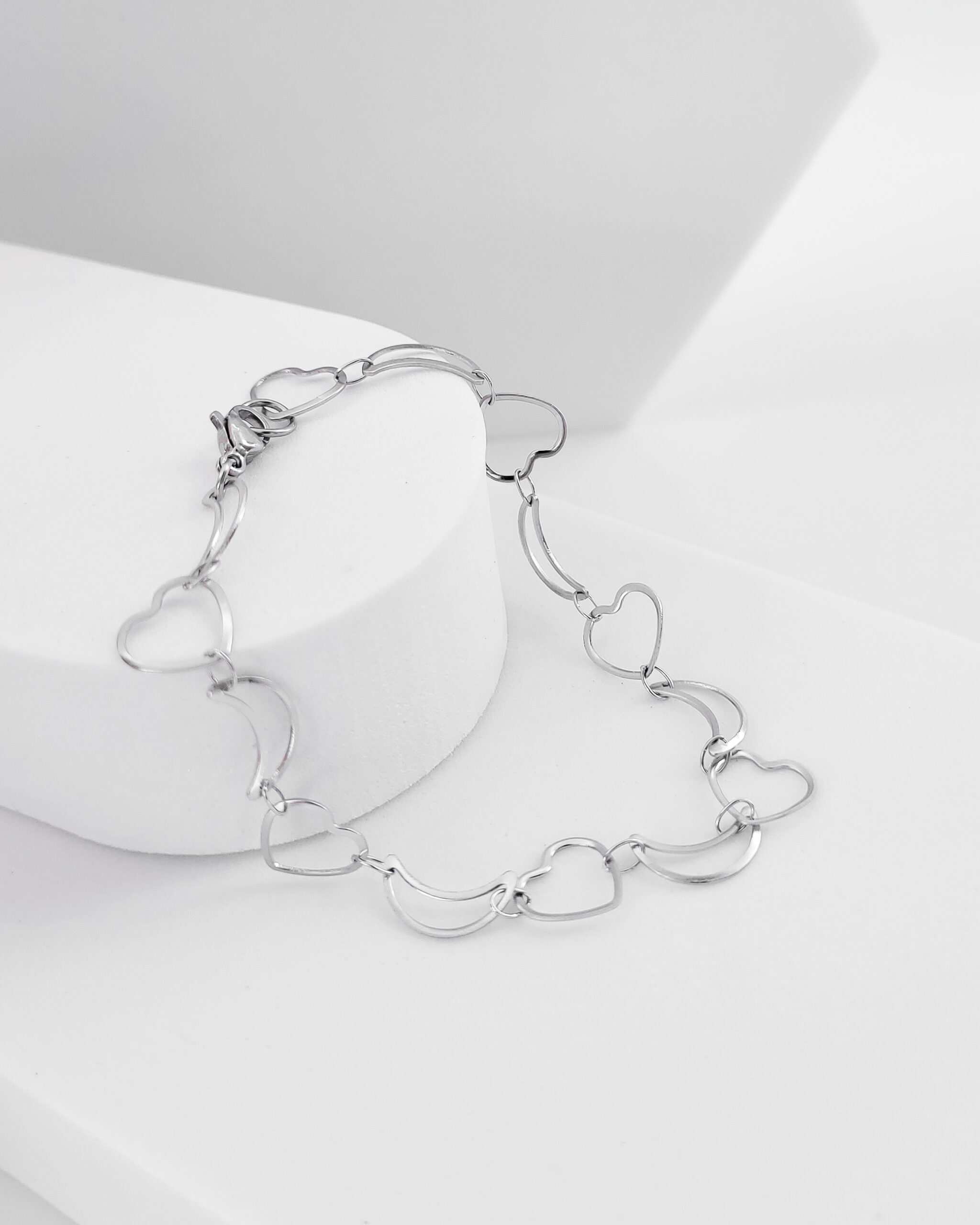 Modelo: Pulseira Lua/Coração em aço inoxidável