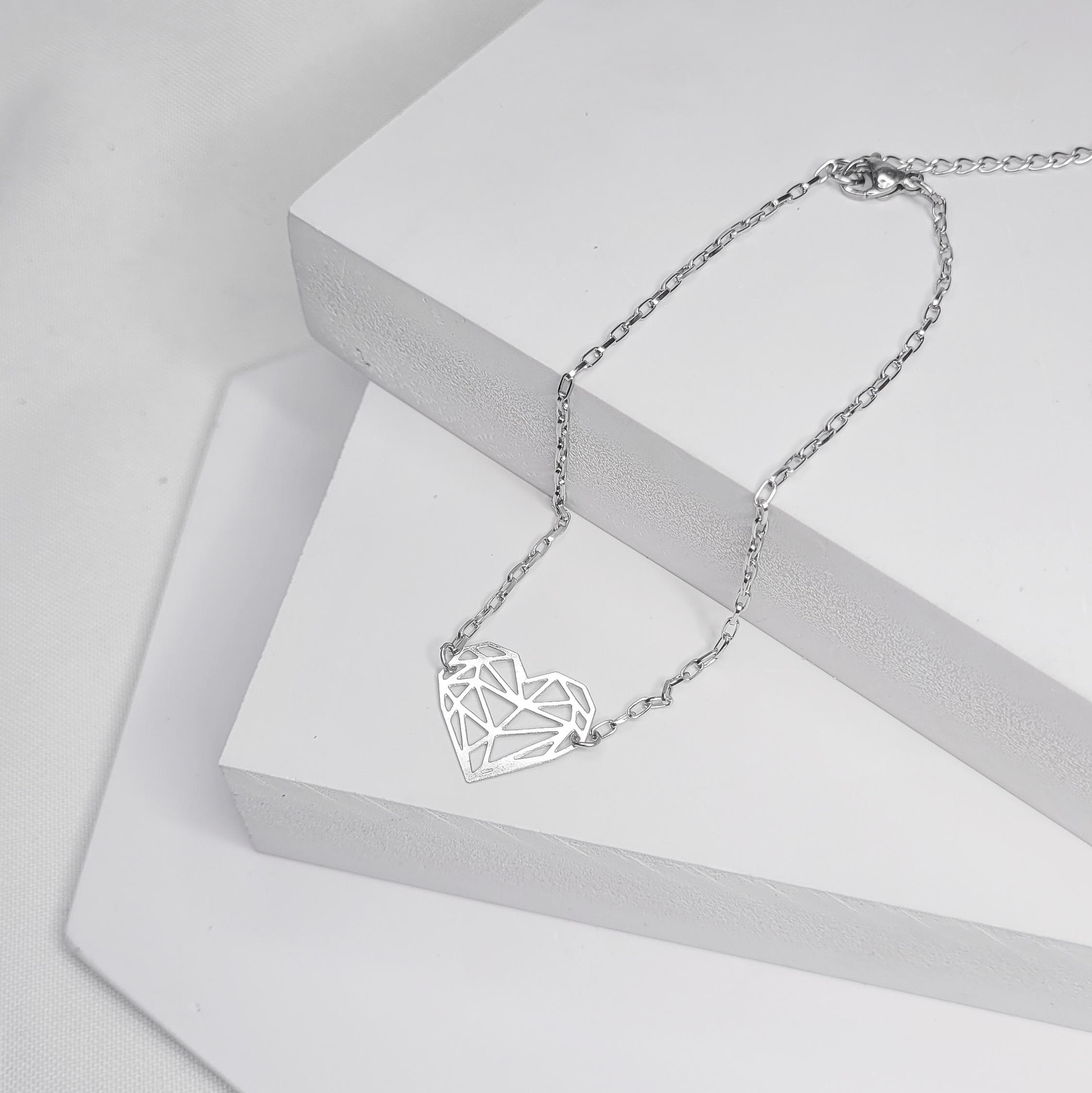 Modelo: Tornozeleira Coração Diamantado (entremeio) em Aço Inoxidável